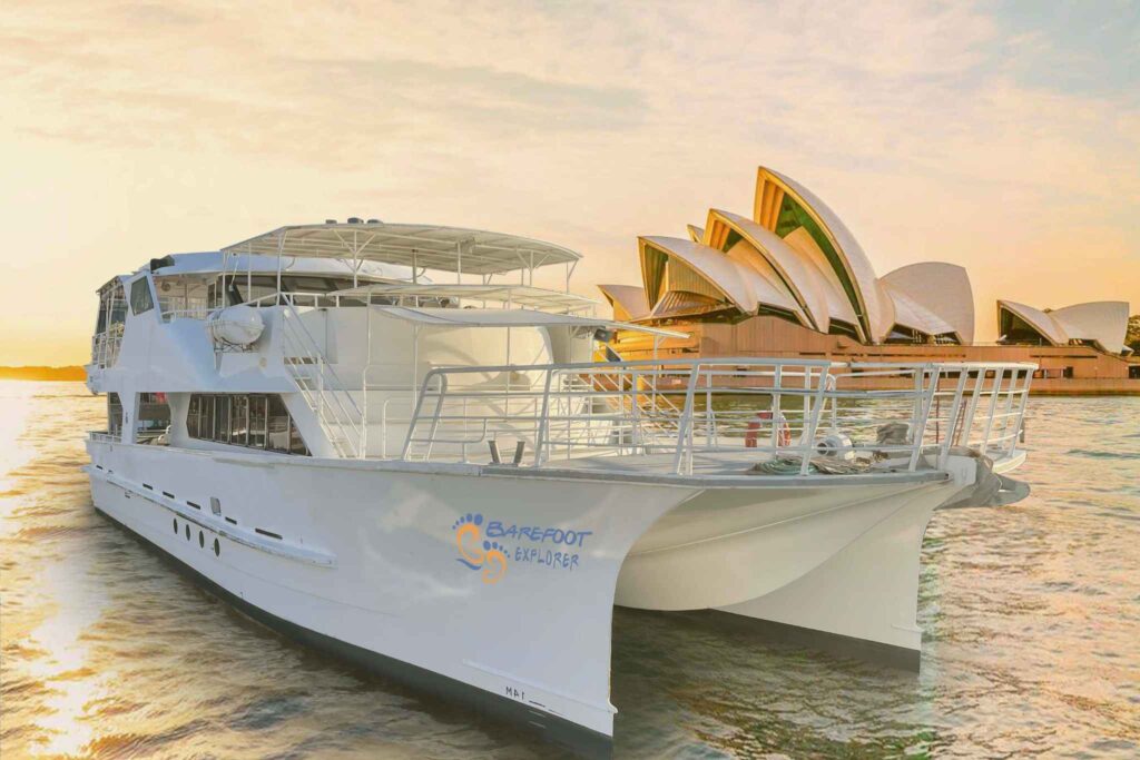 Introducing the Barefoot Spirit – your gateway to adventure and unforgettable events on Sydney Harbour! This 20m Catamaran is your stable, spacious haven for fun. Dance on the bow as we cruise under the Harbour Bridge with a DJ stage and stepped seating so everyone has the best seat in the house. Play in the clear blue waters from our spacious swim platforms and savour BBQ delights cooked by your Captain. Soak in the sun with epic views, a booming sound system, and a passion for excitement. This summer just got a whole lot hotter aboard Barefoot Spirit.