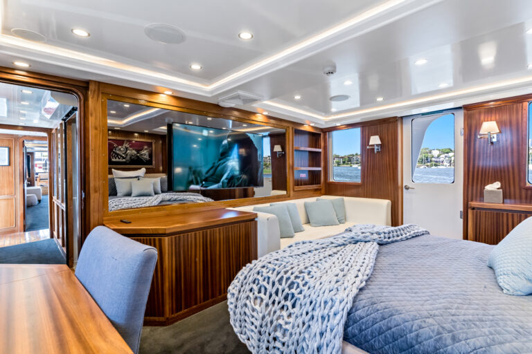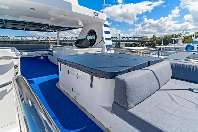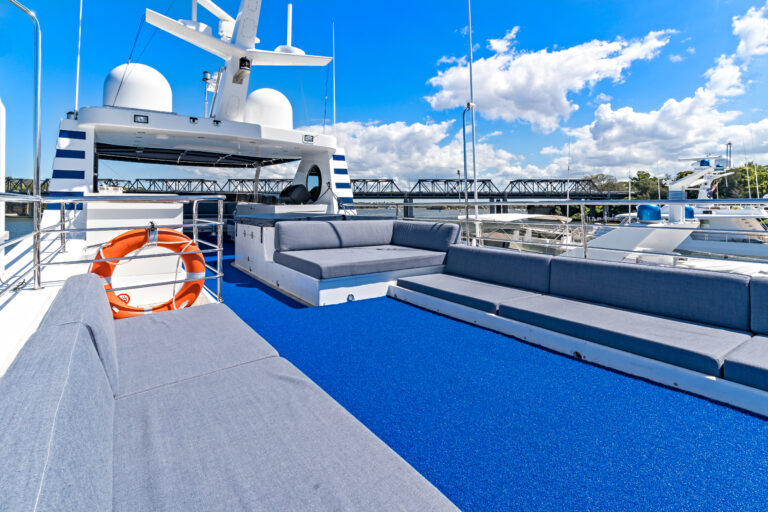 Indulge in the opulent amenities of our well appointed superyacht, which boasts a capacity of up to 50 guests for chartered events or 14 guests overnight. With a rooftop bar, jacuzzi, spacious living areas and luxurious sleeping quarters, spread over three separate levels, you’ll relax and unwind in style onboard Caviar.