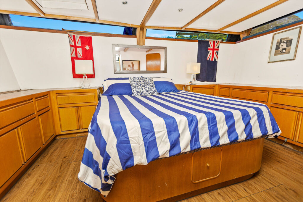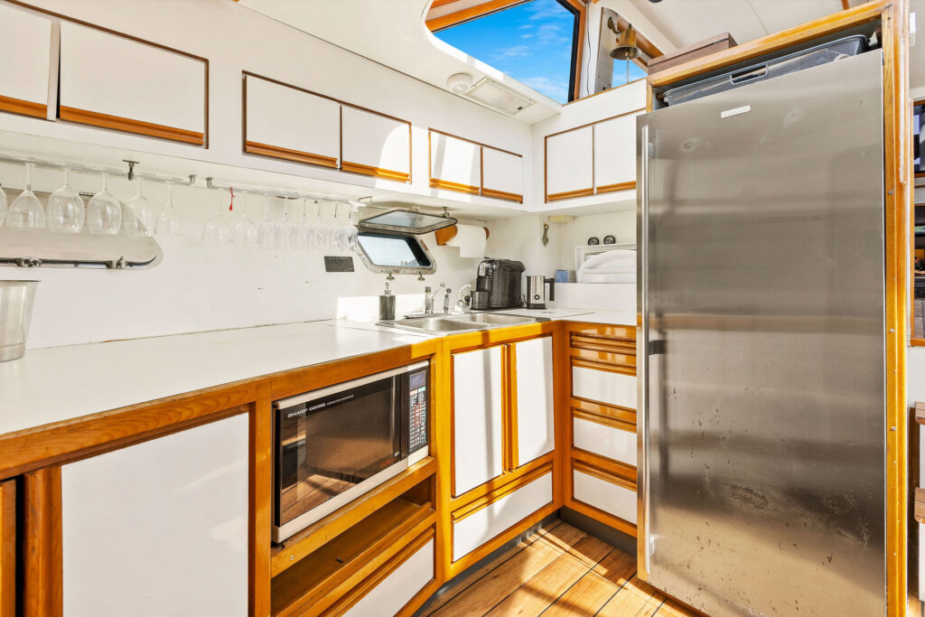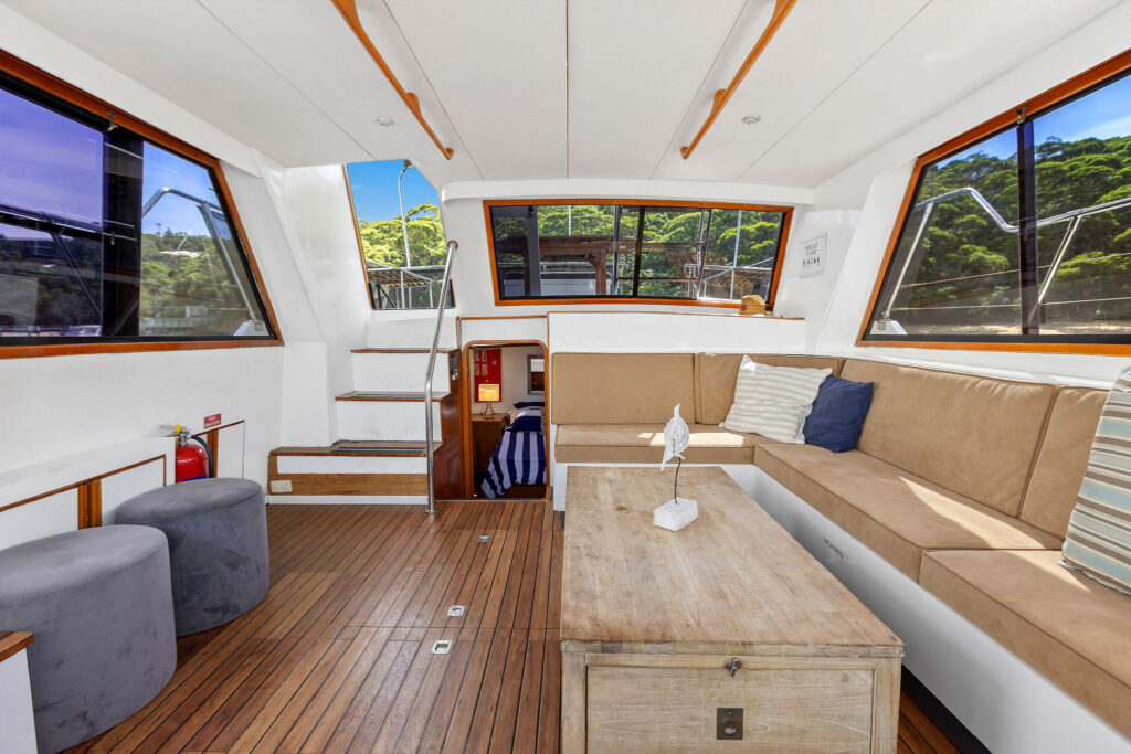 Inside you have spacious lounges in the living area with a full bedroom in the aft cabin. Located forward is a fully equipped kitchen with all appliances/utensils required to cook/prepare food