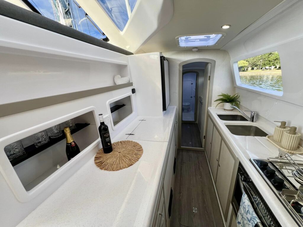 This vessel features a unique layout that offers incredible use of space, with an open flow area from the cockpit into the saloon perfect for entertaining and socialising with your group. The Seawind 1160 LITE has a new sleek interior design and fit out with lightweight and stylish timber-look laminate surfaces, a new contemporary neutral colour palette.