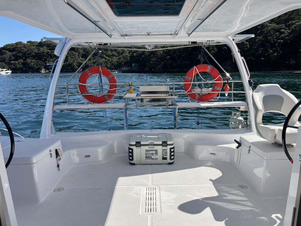 Zeiler has a fully equipped galley, with fridge, freezer and a large esky for storing food & drinks. There is also a centrally located gas BBQ making your food service simple.